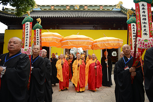 三师步入天宁禅寺