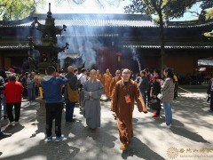 佛宝网五台山讯 2019年4月12日下午,春寒料峭,乍暖还寒。五台山黛螺顶寺出家僧众40余人,克服艰苦的气候条件,集体来到黛螺顶寺