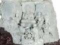此件作品由一块巨大的天然翡翠雕刻成,整体呈山形,通高1.6米,宽1.4米,重2.65吨,体量巨大,造型自然。心愿佛正面转法轮相(图