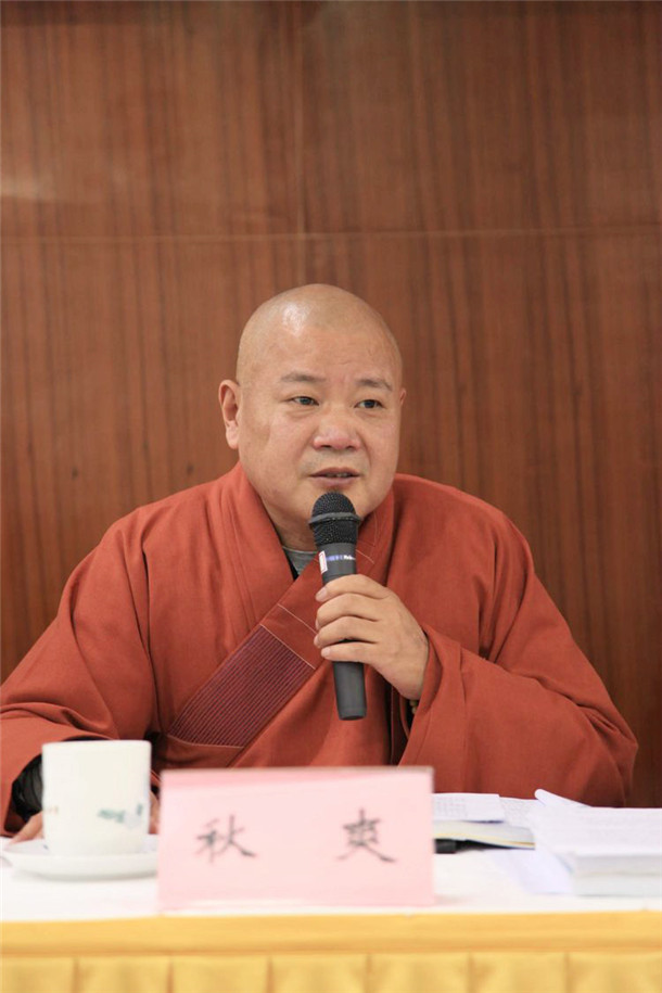 秋爽法师传达市佛协相关精神并主持下半场会议;