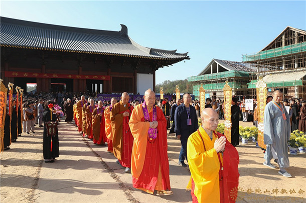 佛宝网天台讯 2019年11月14日,天台山护国寺大雄宝殿落成庆典暨全堂佛像开光在浙江省天台县白鹤镇举行。中国佛教协会副会长、普陀山佛教协会会长、中国佛学院普陀山学院院长、普济禅寺方丈道慈法师一行应邀出席,各级领导、诸山长老、信众、社会贤达等近千人共襄盛会,同沐佛恩。